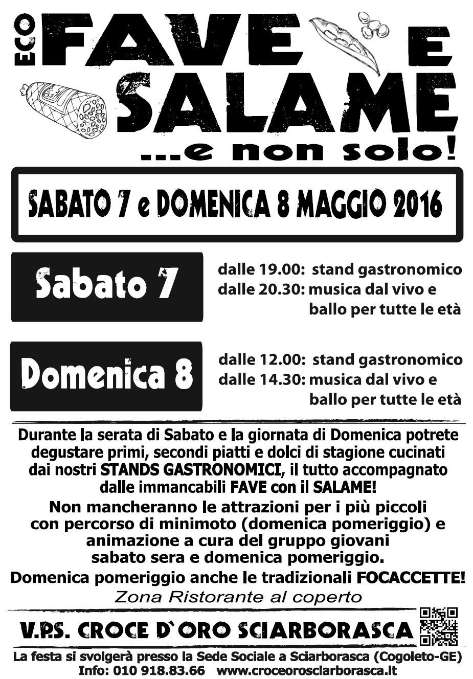 SABATO 7 e DOMENICA 8 MAGGIO torna la grande Sagra di Primavera organizzata dalla Croce d’Oro a Sciarborasca sulle alture di Cogoleto. Anche quest’anno la tradizionale “FAVE E SALAME &…. NON SOLO” inizierà già il SABATO SERA (7 Maggio) con cena, musica e divertimento assicurato per grandi e piccini!